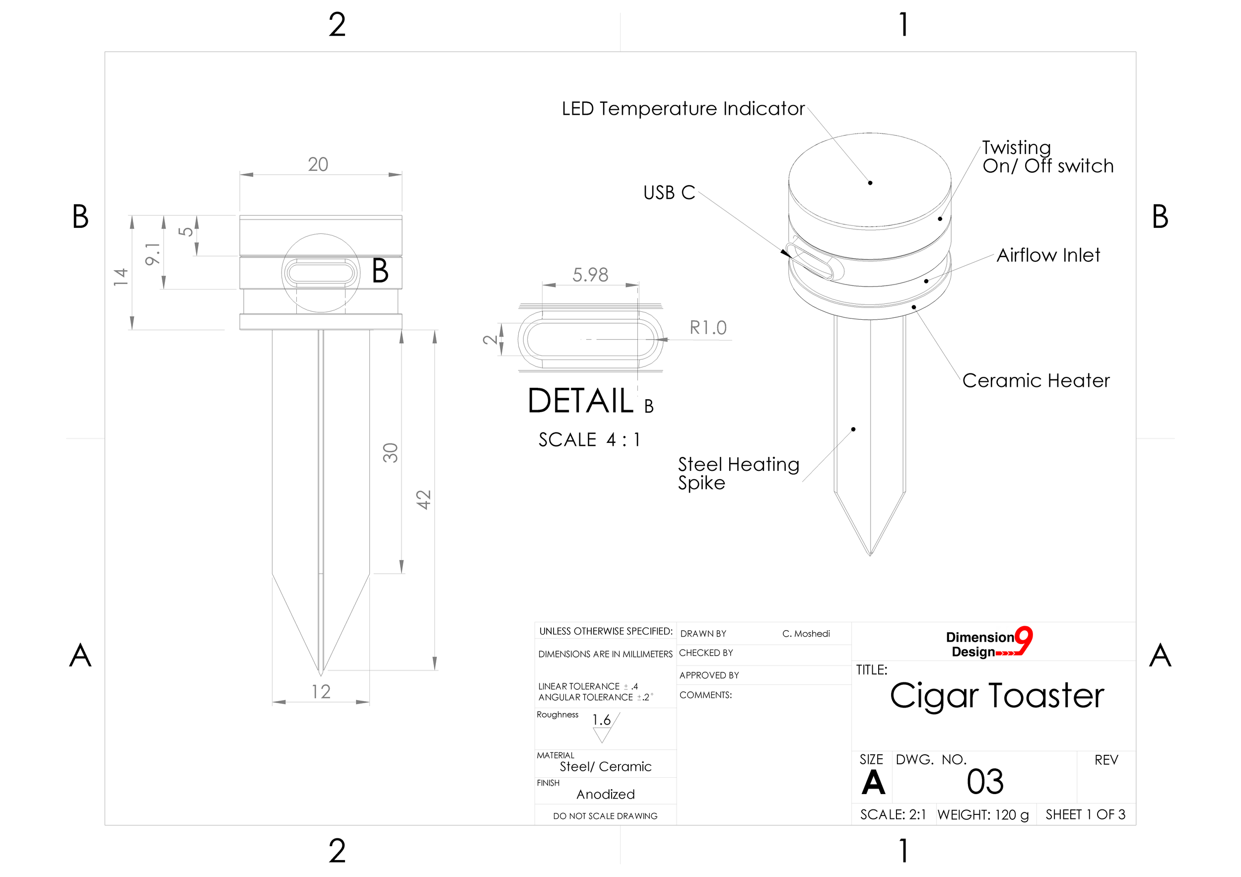Placing a ceramic heater in such a small device proves a challenge. We can strategically place the airflow inlet to ensure the battery doesn’t overheat.