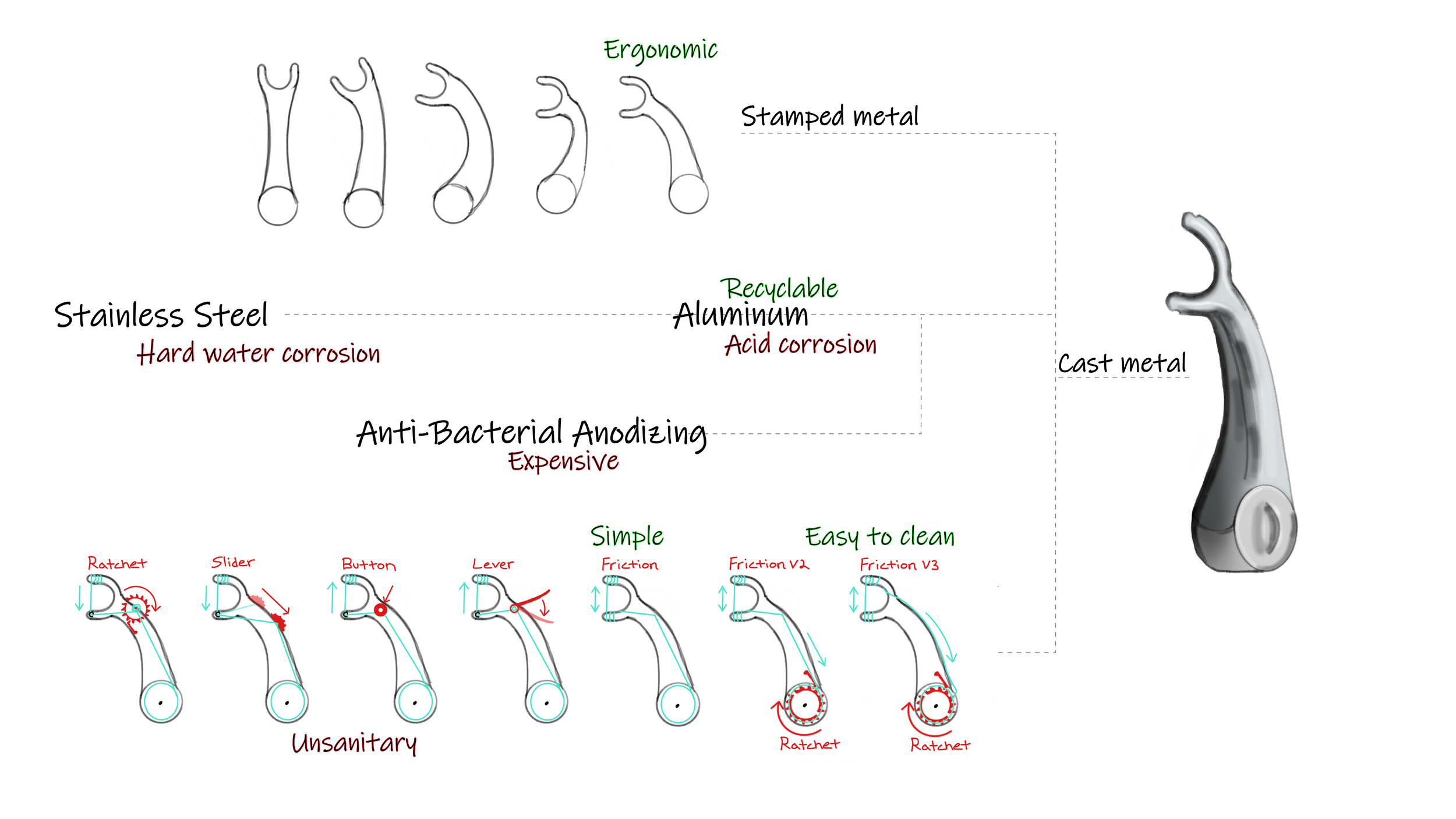 We combined the convenience of a disposable floss pick with the sustainability of a traditional floss spool.